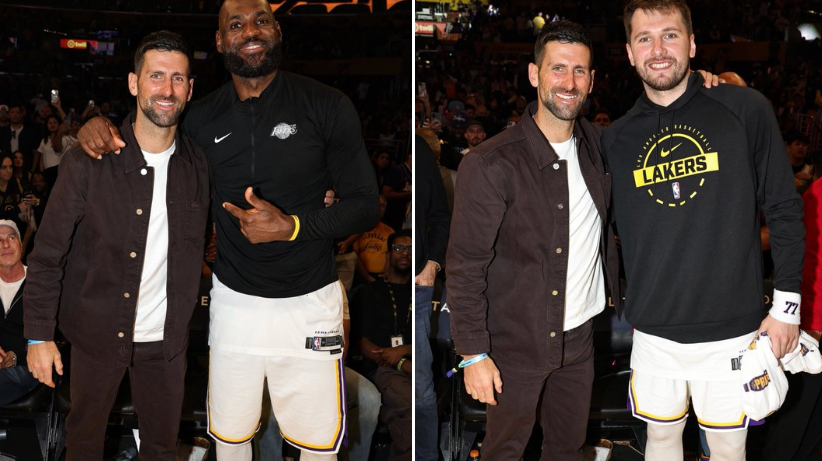 德约科维奇不仅去了东契奇的派对,赛前也现场观战了湖人比赛——在湖人主场和詹姆斯、东契奇在场边合影。