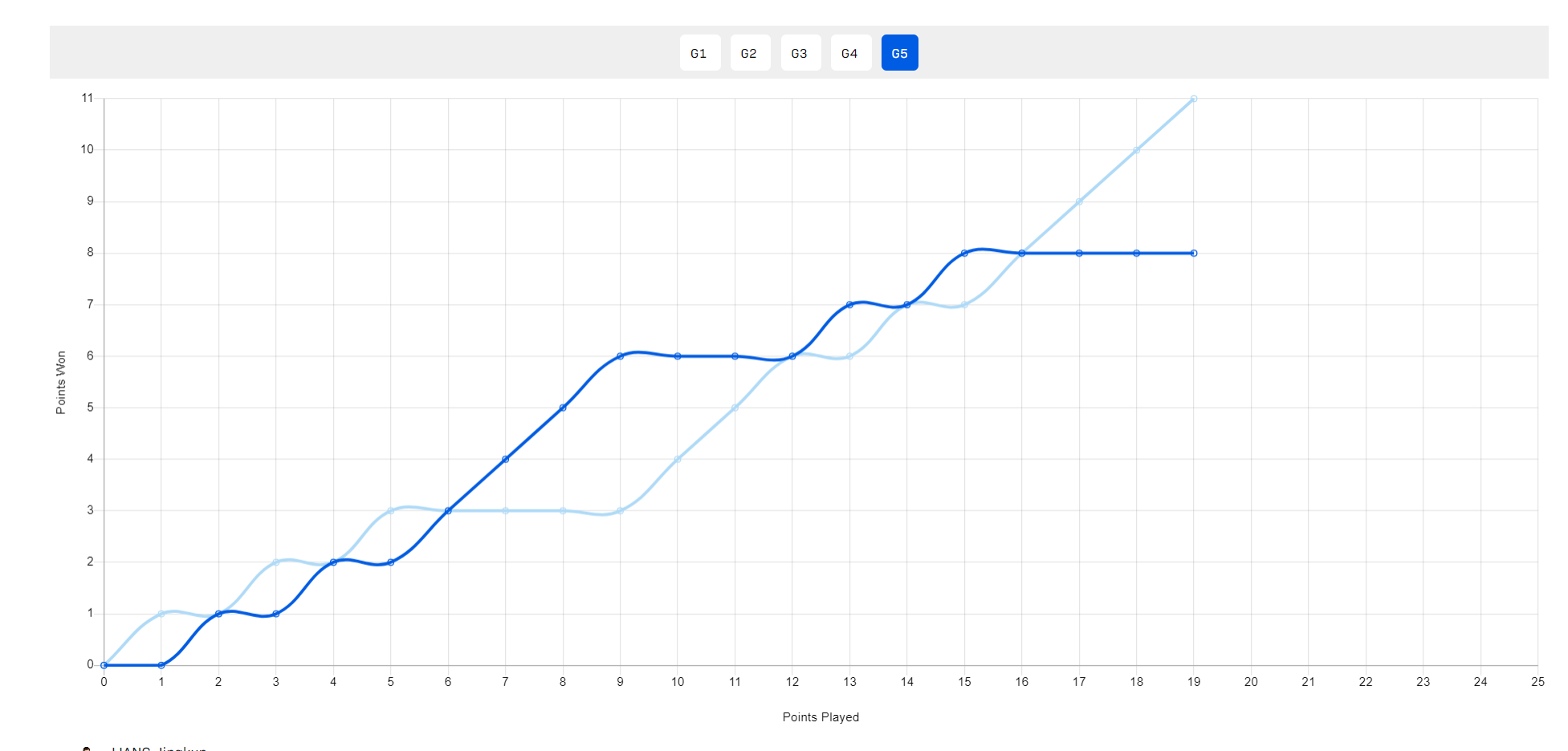 梁靖崑素来由梁五局之称,这场比赛他登场就先输两局试试水,随后连赢两局拖入决胜局抢五,可抢五一战梁靖崑在大比分6-3领先的情况下被周启豪逆转了,抢五最终未能拿下,世界排名第七就这样首轮游了。